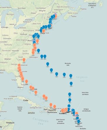 Our cruise from Maine included coastwise travel to Hampton, Virginia. We then sailed across 1400 miles of open North Atlantic to Virgin Gorda in the British Virgin Islands, and spent the winter wandering through the Leewards and into the Windwards. In the spring we returned through the British and US Virgin Islands, along the southern Puerto Rican coast before spending several wonderful weeks with friends and family in the Dominican Republic.